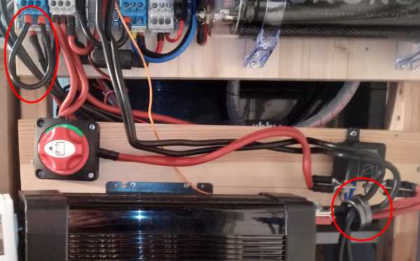 Also schloss ich den Plus-Pol des neuen Wechselrichters direkt an der Batterieschiene an und den Minus-Pol