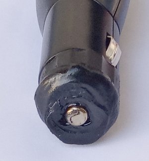 Der Zinnüberzug des Kontaktbleches für Plus ist geschmolzen. Auch das Gehäuse hatte sich verformt,